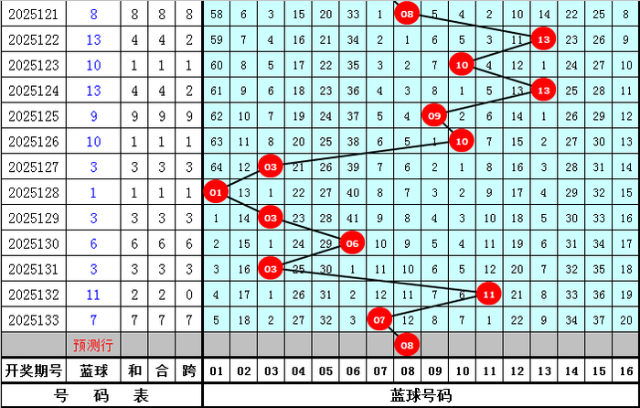 南华天第2025134期双色球区间号码个数统计分析:(红球:01-11为一区,12-22为二区,23-33为三区;蓝球:01-04为一区,05-08为二区,09-12为三区,13-16为四区)
